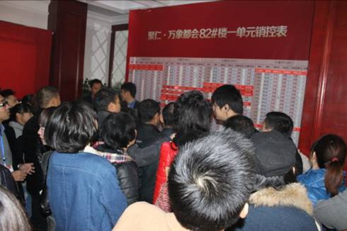 當(dāng)天上午8時不到,聚仁·萬象都會臨時銷售中心門口已是人潮涌動,大批意向客戶早早就來此等候,他們當(dāng)中有許多都是一家老小齊出動,顯然對此次購房非常看重。8時58分,選房活動正式開始,主持人采取搖號的方式進(jìn)行開盤。每次搖出8組客戶,外圍購房者按照抽中的VIP號分批進(jìn)內(nèi)場進(jìn)行選房,而內(nèi)場選房區(qū)也是人頭攢動,頻頻傳出成交捷報(bào)。整個選房活動持續(xù)了大概3個多小時,從抽號、選房、到簽收、再到付款,開盤井然有序地進(jìn)行著,大多數(shù)購房者都選到了心儀已久的房子。一位成交的客戶帶著交易合同從選房區(qū)出來時早已是滿臉笑容,她一邊急切地舉著手中的材料喊著家人過來分享,一邊打電話向之前引領(lǐng)她看房的置業(yè)顧問報(bào)喜,“買到了,買到了,買到了,就是我看中的那個房型,樓層也很好,太高興了!”