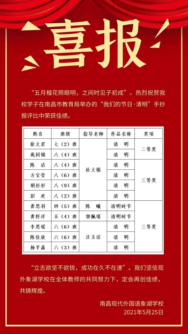 喜報 | 南昌現代外國語象湖學子在市教育局手抄報評比中榮獲佳績!