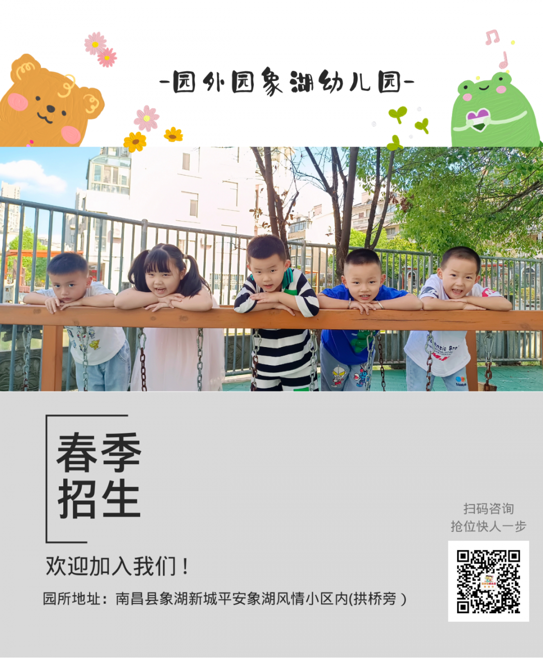 園外園·象湖園創辦于2016年9月,坐落于南昌市南昌縣平安象湖風情小區內。園所占地面積3000平方米,建筑面積4150平方米。設有大班、中班、小班、寶寶班共12個班級,收托3-6歲幼兒360人??