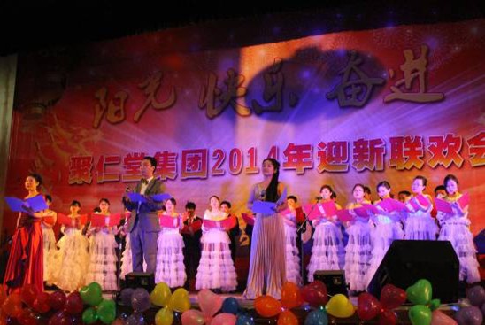 2014年1月4日下午,聚仁堂集團在南昌現代外國語學校大禮堂舉辦了2014年“陽光 快樂 奮進”迎新聯歡會。集團董事長胡樂平、副董事長兼總經理劉堅、副董事長劉雁華,集團總部各部門負責人,下屬公司、院校領導,以及來自集團各單位的員工、教師共1000余人歡聚一堂,表彰先進,觀看演出。在熱烈的喜慶氛圍中,大家一起回顧了2013年聚仁堂集團發展的各項成就,共同分享了成功的喜悅,并展望2014年的美好前景。