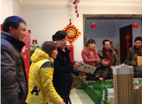 現(xiàn)場置業(yè)顧問給客戶耐心的講解項(xiàng)目