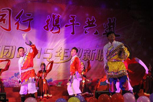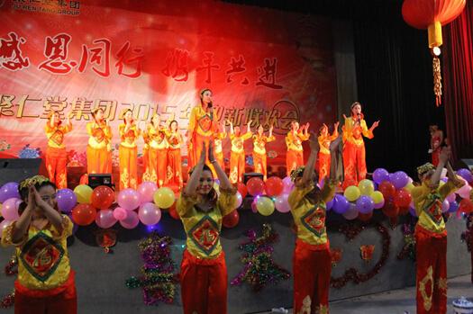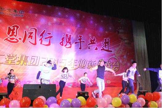 2015年經營工作目標責任狀簽訂儀式結束后,聯歡會正式開始。此次聯歡會以“感恩同行 攜手共進”為主題,由集團各單位、各部門奉獻的舞蹈、歌唱、小品、朗誦、士氣展示等21個節目輪番登場,精彩紛呈。整臺演出始終洋溢著歡樂、喜慶的氛圍,充分表達了聚仁堂人加快發展、共建和諧的美好祝愿。
