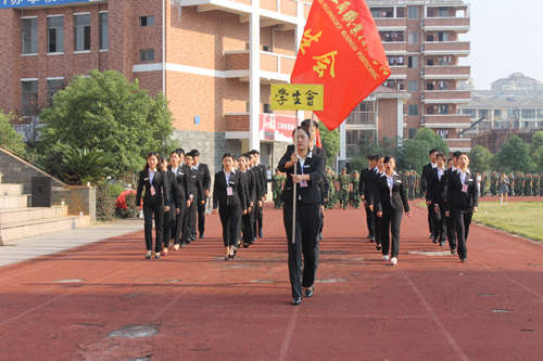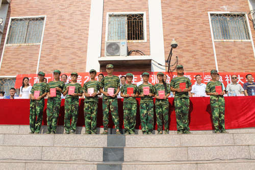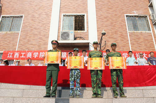 隨后,省人民武裝學院江濤總隊長講話,學院人民武裝部部長周圣華同志作軍訓總結,學工處處長周艷萍宣讀表彰決定,院領導向參訓部隊贈送了錦旗、向受表彰的優秀中隊、學員頒獎并合影留念。