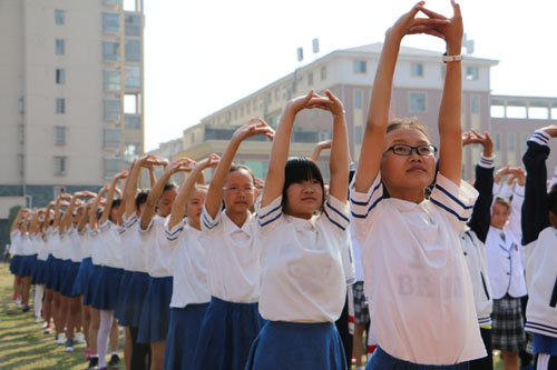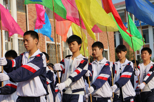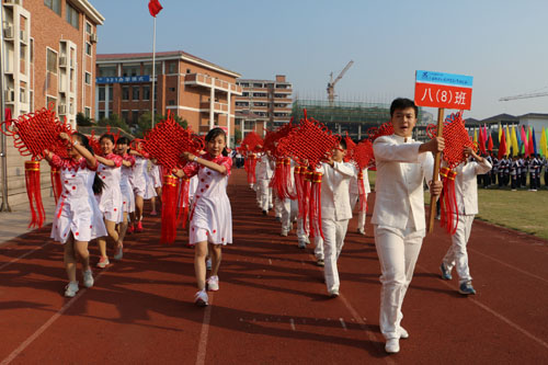 待各班學生方陣有序排列好,國歌聲莊嚴奏響,全場安靜嚴肅。校長李金玉致開幕詞,她首先代表學校,向精心籌備此次運動會所有工作人員和全體同學,以及關心支持運動會的全體教職員工表示衷心的感謝,并向全體運動員、裁判員致以親切的問候和美好的祝愿。李金玉校長在開幕式提出希望我們的運動員能不懈地追求“更高、更快、更強”的奧林匹克精神,為南昌現代外國語運動會創造新的記錄。接著,裁判員代表、運動員代表分別宣誓,作出了在比賽場一定會秉承公平、公正的承諾。