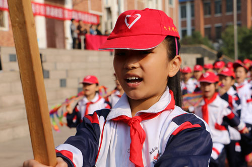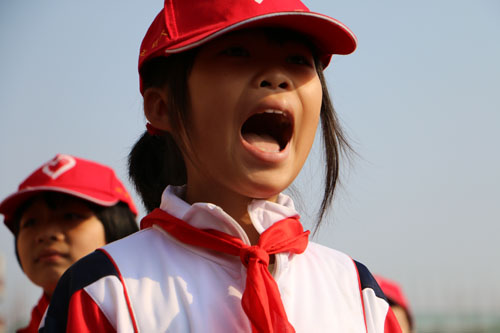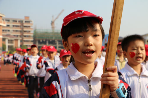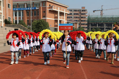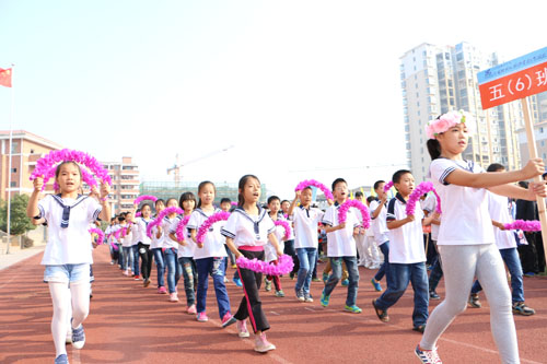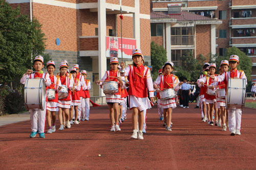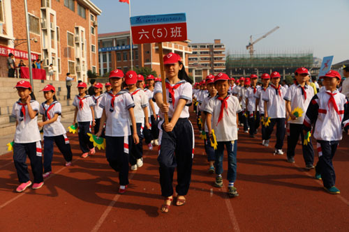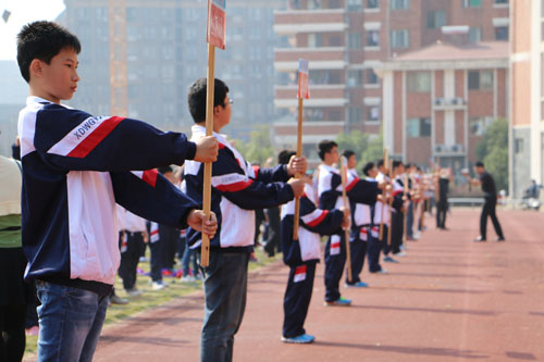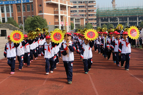 開幕式上,伴隨著《運動員進行曲》激昂的旋律,在邁著整齊步伐的國旗護衛隊的帶領下,彩旗隊和禮儀隊穿著統一服裝,活力十足的走過主席臺,緊隨其后的是從高年級到低年級依次入場的各班方隊,他們踏著正步,斗志昂揚,口號響亮,激情滿腔。