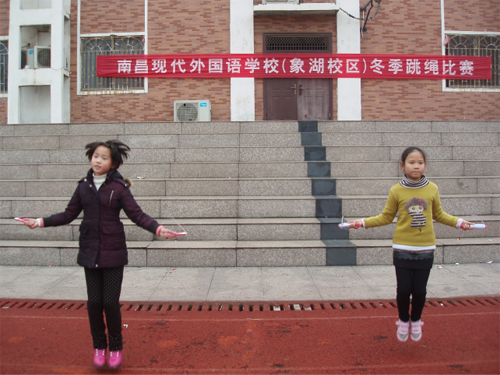 為更好地開展冬季體育運動,增強學生的體質(zhì),培養(yǎng)學生團結(jié)、拼搏的精神,12月23日,南昌現(xiàn)代外國語學校(象湖校區(qū))舉行了一場緊張、激烈的跳繩比賽。操場上一片歡騰景象,一根根彩繩、一個個純真的笑臉在燦爛的陽光下飛舞、綻放。“各就各位,預備——跳。”“嚓嚓嚓”繩子不斷拍打地面,啦啦隊更是不甘示弱,喊得一陣比一陣響,喊得一陣比一陣亮。這次跳繩比賽凝聚了老師,同學的熱情。比賽前,為集體爭光的堅強信念每天激勵著同學們努力練習,你追我趕,積極備戰(zhàn)。比賽中,各個同學精神抖擻,信心十足,賽場上龍騰虎躍,身手不凡。最終由四(7)班的鄔梓賢與六(2)的徐宇豪分別以一分鐘雙腳跳216與210的好成績共同獲得一等獎。