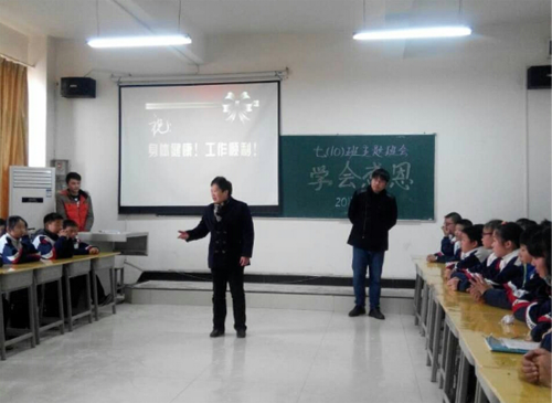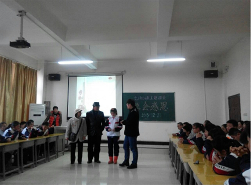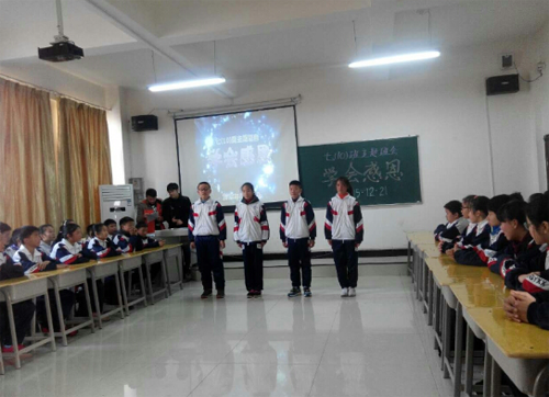 2015年12月21日下午,南昌現代外國語學校(象湖校區)初一年級十班舉行了一次以“學會感恩”為主題的班會活動,讓感恩走進同學們的心中,讓愛伴隨同學們成長。班主任吳加亮老師及四位主持人彭磊、段佳敏、李云鵬、胡佳美主持本次班會,參會嘉賓有陳勇鋒校長、王桂紅校長、張水秀校長,小學、初中各年級的老師,以及部分學生家長。