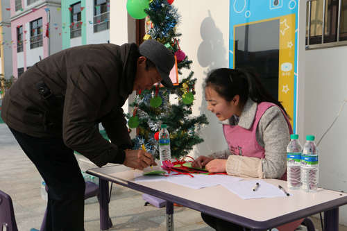 園外寒風(fēng)襲人,園內(nèi)春意融融,五彩的氣球、飄飛的彩旗、繽紛多彩的圣誕樹,將活動的現(xiàn)場渲染得異常火爆,每個人的臉上都寫滿了歡樂和喜悅。