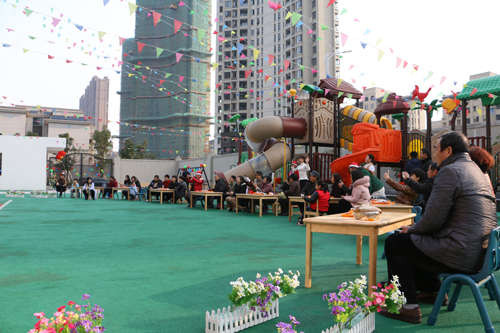 活動開場,全體幼兒、家長手牽手入場圍城一個大圓圈共跳舞蹈“鈴兒響叮當(dāng)”;緊接著,園長和家長代表各自發(fā)言來表達(dá)對幼兒園節(jié)日的祝福;發(fā)言結(jié)束后,幼兒和教師一起表演,孩子們將自己學(xué)到的舞蹈全方位的展示給爸爸媽媽們;家長和孩子們一起參加的親子游戲?qū)⒂變簣@的快樂氣氛推向又一個高潮,親子游戲精彩紛呈,“剝桔子”、“搶椅子”、“蹲蹲樂”、“大腳踩小腳”等親子游戲贏得了大人們孩童般的天真笑聲,孩子因開心而樂,家長因滿意而笑,快樂匯聚成幸福的海洋,讓大家深深感受到江西迪斯尼幼兒園朝陽園這個大家庭的溫暖。