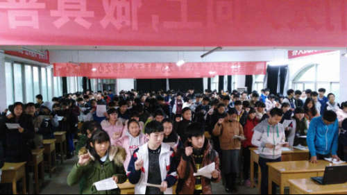 “我要忘記昨天的光榮和遺憾,我要把今天當做生命的最后一天,我要用自信驅趕黑暗,我要用勤奮書寫燦爛,我要讓今天成為不朽的紀念日,我要讓心中的夢想實現,中考,我拼了!”3月9日下午,南昌現代外國語學校(迎賓校區)2016屆中考百日沖刺動員大會在校圖書館三樓隆重召開,初三年級全體學生進行了宣誓。