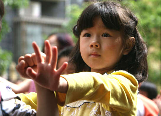 活動開始,在幼兒園老師的帶領下,孩子們隨著動感歡樂的音樂翩翩起舞,向家長們展示韻律操表演。小朋友們認真的跳著,不時變換著姿勢和花樣。家長們仔細觀看孩子們的表演,不時的給與熱烈的掌聲并拍照留念。