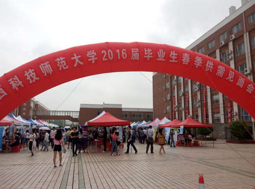 2016年5月7日,江西科技師范大學在紅谷灘紅角洲校區C樓廣場舉行2016屆畢業生大型供需見面會。應該校招生就業辦邀請,南昌現代外國語學校在招聘會現場開設展位,進行專場招聘。南現外校辦周主任帶領高中部多名教師赴江西科技師范大學開設專場招聘。