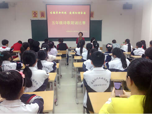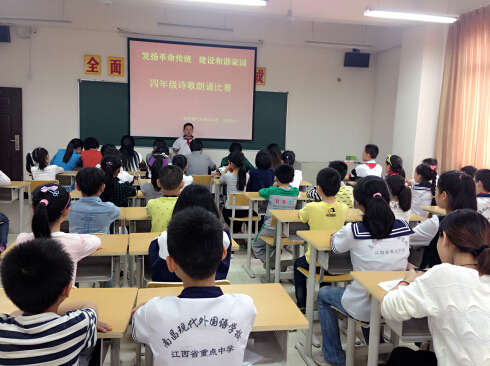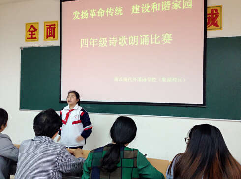 為進一步加強學校文化建設(shè),陶冶學生的情操,營造朝氣蓬勃、積極向上的校園文化氛圍,南昌現(xiàn)代外國語學校(象湖校區(qū))在多媒體教室成功舉辦了以 “發(fā)揚革命傳統(tǒng),建設(shè)和諧家園”為主題的詩歌朗誦活動。