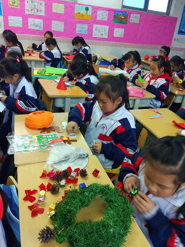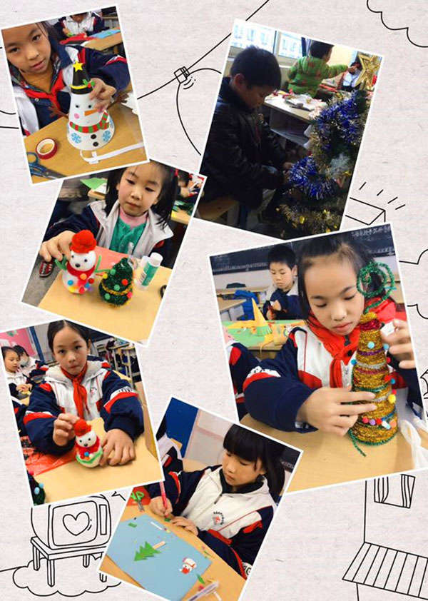二至六年級的同學都參加了此次比賽,在比賽過程中,各年級的同學們積極參與,齊齊動員,他們盡自己最大的努力,發揮了最好的水平,制作了形狀各異,色彩斑斕的作品。有憨態可掬的小雪人,神態各異的圣誕老人,富有創意的迷你圣誕樹,最吸引人的是圣誕許愿樹,樹上掛滿了孩子們濃濃的新年祝福語。