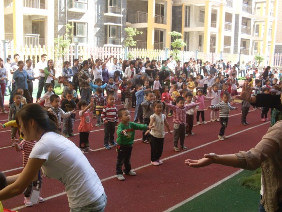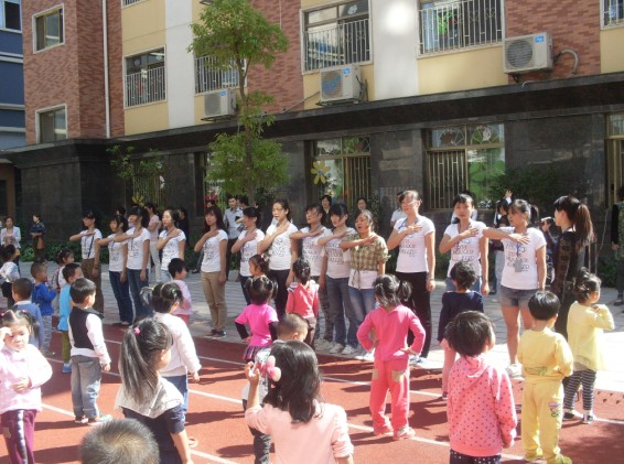 9月29日,在迪斯尼幼兒園、園外園幼稚園的操場(chǎng)上,響起了早操律動(dòng)音樂(lè),可愛的寶寶們?cè)诓賵?chǎng)上跟隨著老師們的步伐,蹦蹦跳跳起來(lái)。在老師的帶動(dòng)下,在場(chǎng)的家長(zhǎng)們也紛紛加入進(jìn)來(lái),和寶寶們一起又唱又跳。迪斯尼幼兒園的老師們表演了民族舞《天藍(lán)藍(lán)》,還進(jìn)行了古箏、個(gè)人舞的才藝表演,展示了幼兒園老師們朝氣蓬勃的精神面貌。園外園幼稚園的老師們也不甘示弱,在現(xiàn)場(chǎng)以特有的方式展現(xiàn)了幼兒園的承諾、愿景、文化。