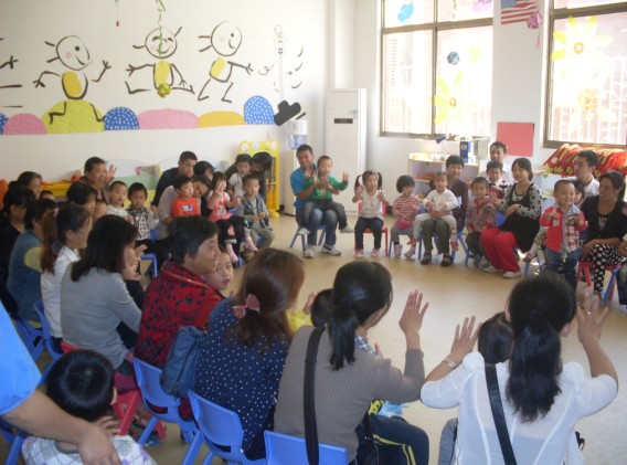 最后,老師們與家長(zhǎng)、寶寶們?cè)诟靼嘟淌覂?nèi),開展親子互動(dòng)節(jié)目,氛圍融洽和諧。