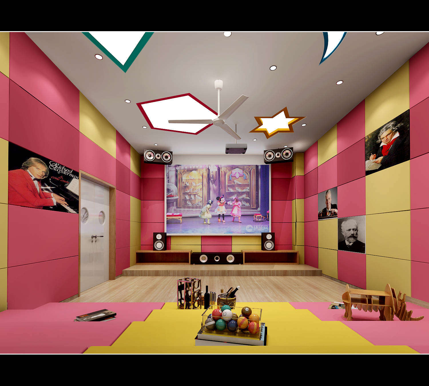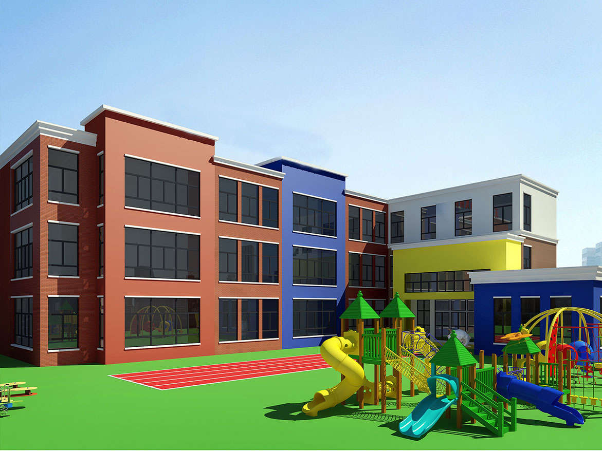 L形建筑與鐵藝欄桿圍合出大面積幼兒活動空間,大型幼兒游樂實施,成為小朋友游戲的天堂。多媒體一體機、鋼琴、空調、消毒柜、熱水器等現代化設備一應俱全;音樂室、美術室、手工室、舞蹈房、繪本館等專用活動室使孩子們流連忘返;樓層連環式的卡通文化設計,主題區角讓幼兒園真正成為孩子們生活、游戲、學習、創造、健康成長的快樂天地。