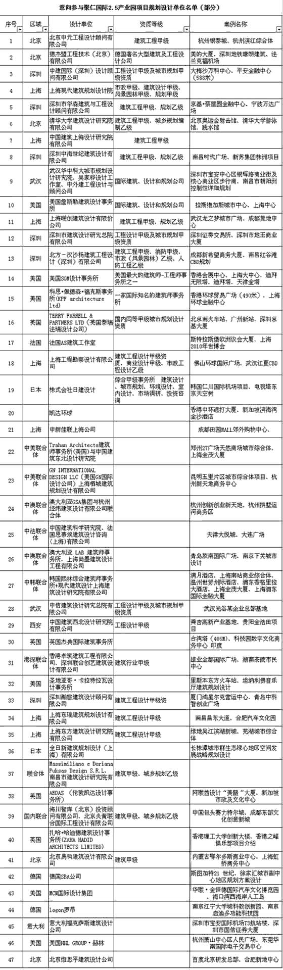 附:意向參與聚仁國際2.5產業園項目規劃設計單位名單(部分)