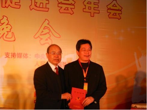 商務(wù)部產(chǎn)業(yè)損害調(diào)查局局長劉歡(左)向胡樂平董事長頒發(fā)中國經(jīng)濟貿(mào)易促進會副會長聘書