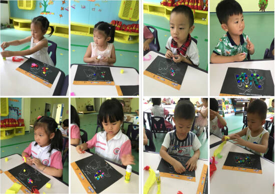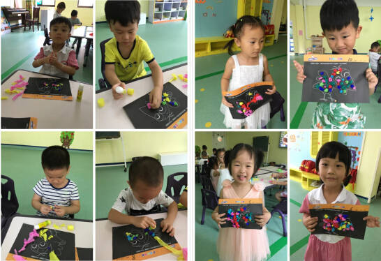 寶貝們用斯帖、揉貼等方式裝飾小烏鴉,小朋友們?cè)谘b飾過程中相互幫助,不爭不搶,秩序井然。都很愿意在活動(dòng)中大膽展示,去實(shí)現(xiàn)小烏鴉要變美的愿望。瞧!孩子們的作品完成了,多自豪多開心呀!