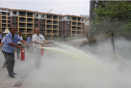 據(jù)現(xiàn)場安保人員介紹,聚龍物業(yè)每年都會(huì)組織安保人員進(jìn)行多次消防演練,每次消防演習(xí)內(nèi)容不只是局限于對(duì)保安使用滅火器、甩水帶、接槍頭等技能進(jìn)行訓(xùn)練,還把對(duì)消防器材和消防井出水情況的檢查,也列入了演習(xí)的內(nèi)容中,目的就是讓保安人員明確各自的職責(zé),系統(tǒng)性地掌握滅火操作技能。