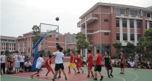 9月3日下午,江西工商職業技術學院團委、學生會組織2013級新生以軍訓中隊為單位進行了籃球友誼賽。各中隊均挑選出優秀的籃球隊員,積極組織訓練,秉承著“友誼第一、比賽第二”的精神開展籃球比賽。各中隊未參賽新生,均整齊的坐在球場邊,為自己的球隊吶喊助威,“加油”聲,口號聲此起彼伏,一浪高過一浪,現場氣氛十分熱烈。