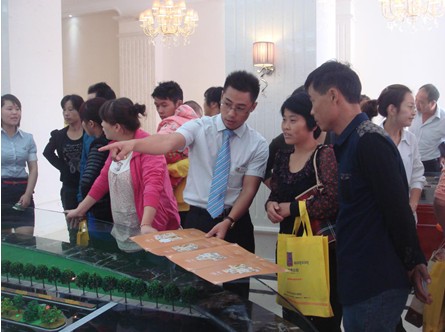 眾多客戶圍著沙盤了解項(xiàng)目情況
