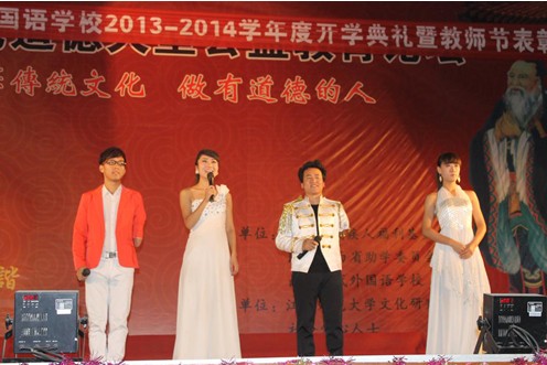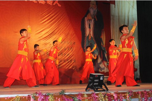 演出中,校長涂序健上臺接受了“心靈之聲”藝術團贈送的墨寶《志存高遠》,并代表全校師生對參加表演的殘疾演員表示衷心的感謝并致以崇高的敬意。