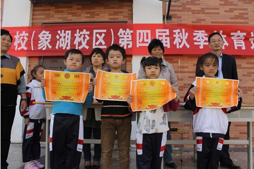 運動會期間,小運動員們不畏強手,奮勇爭先,賽出了風格,賽出了水平;裁判員們恪盡職守,公正執(zhí)法,贏得了運動員的尊重;志愿者們不畏勞苦,熱情服務,受到了廣大師生的贊許。3天的比賽緊張而熱烈,在同學們的熱情參與和全校教職工的共同努力下,運動會取得了運動成績大豐收,多項比賽項目打破校紀錄。閉幕式上,學校領(lǐng)導為獲得各類優(yōu)勝獎的班級頒發(fā)了獎狀,副校長陳勇鋒致閉幕詞。