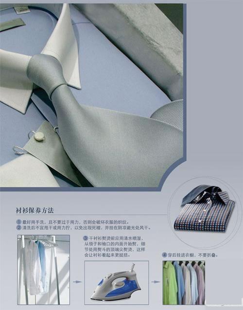 襯衫洗完了,最重要的一定就是要讓它平整,無皺。怎么樣無皺?雖然市場上出現(xiàn)很多“免熨燙”襯衫,但真正的免熨效果仍然僅限于低含棉量襯衫(70%含棉量以下),純棉面料經(jīng)過低技術(shù)的化學(xué)強(qiáng)制免熨處理后往往喪失了純棉特有的親膚感,還存在對人體有害的物質(zhì),并且經(jīng)過5-20次洗滌后可能就喪失了免熨效果。(在歐美銷售的高級襯衣,是不做免燙處理的,最多只有非化學(xué)方式的“易整理”處理)。換句話說,高檔襯衫要達(dá)到最佳穿著效果,還是要熨燙一下比較好。