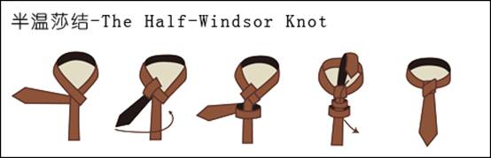 2.半溫莎結是一個形狀對稱的領帶結,它比普瑞特結略大而比溫莎結小。
