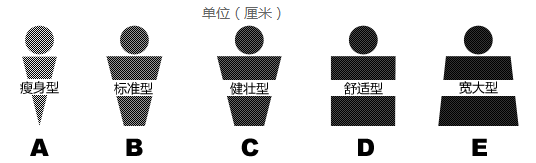 體型分類代號有Y、A、B、C四種,Y體型為寬肩細腰型(偏瘦或肌肉特發(fā)達型),A體型為一般正常體型,B體型腹部略突出(偏胖體型),C體型為肥胖體,具體差值為: