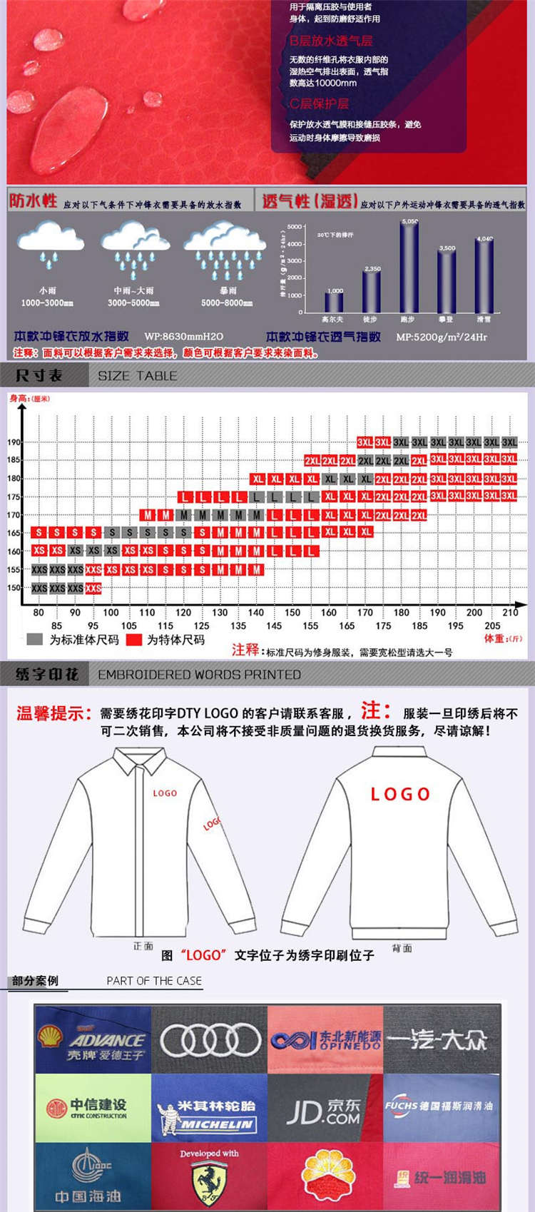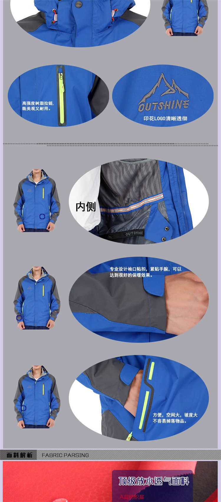 北京沖鋒衣貼牌加工定做生產廠家 產品編號:CFY-82 產品品牌:慕欣格 計量單位:件 面料成分:100%聚酯纖維 是否現貨:定做 打樣時間:3-5天 主要顏色:多色可定 號型范圍:S-4XL 大貨周期:7-15天 產品優勢:產品定制可滿足多種定制方案