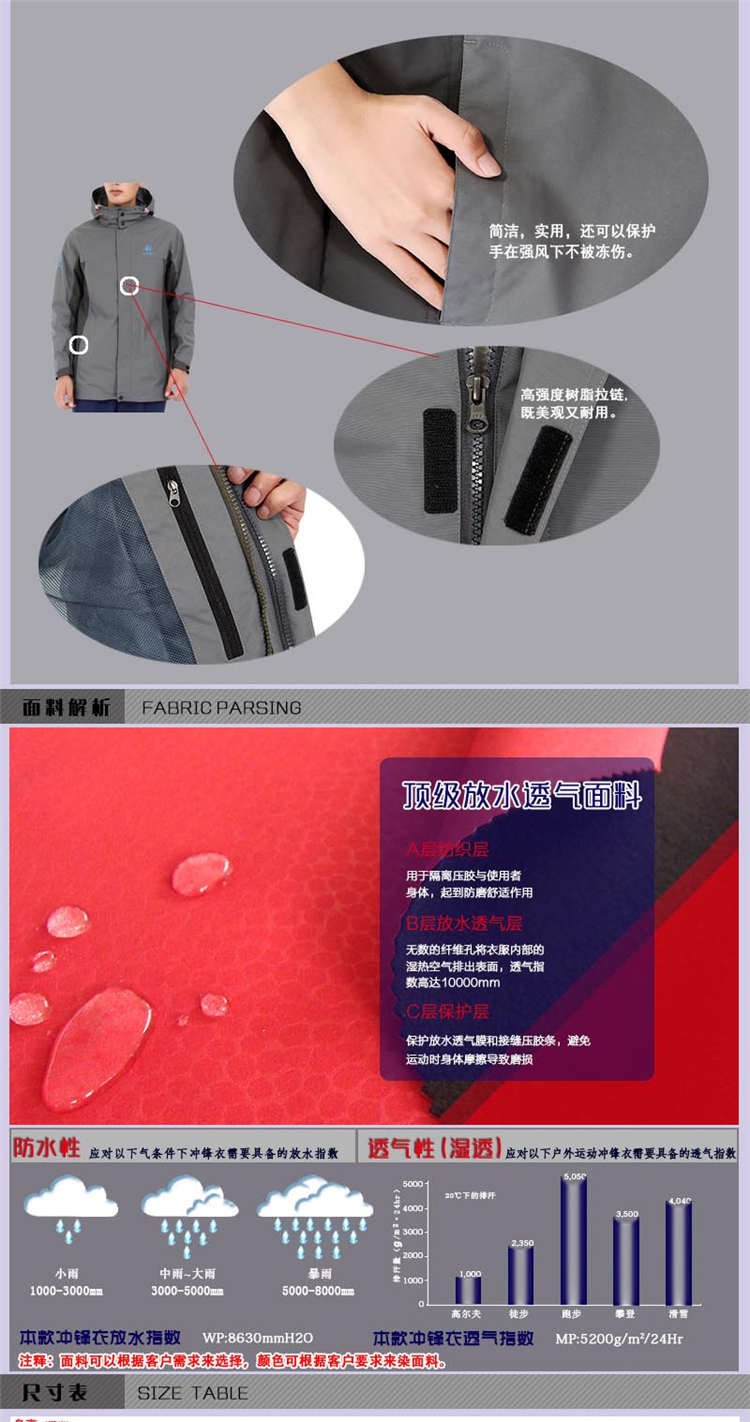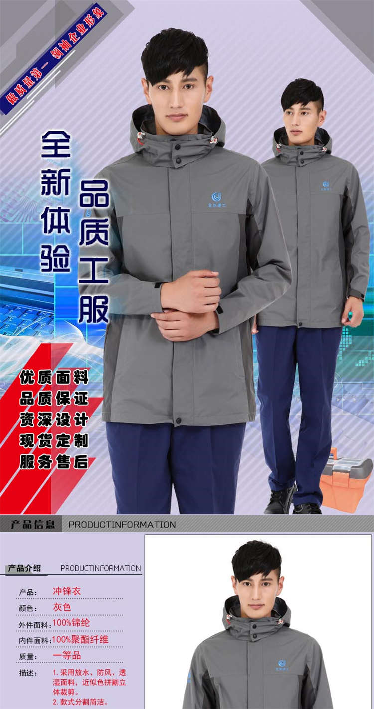 企事業機關單位定做沖鋒衣就找慕欣格 產品編號:CFY-75 產品品牌:慕欣格 計量單位:件/套 面料成分:100%聚酯纖維 是否現貨:定做 打樣時間:3-5天 主要顏色:多色可定 號型范圍:S-4XL 大貨周期:7-15天 產品優勢:產品定制可滿足多種定制方案
