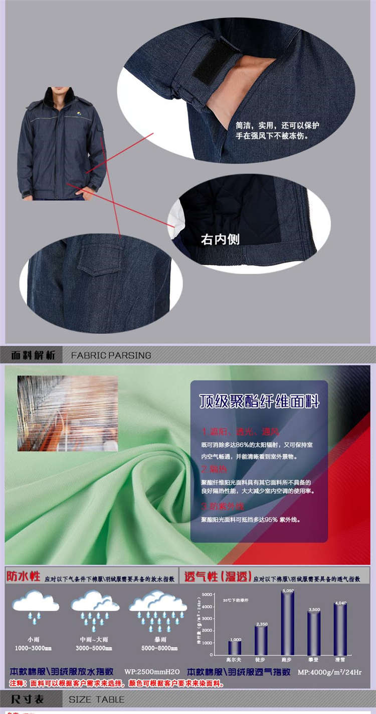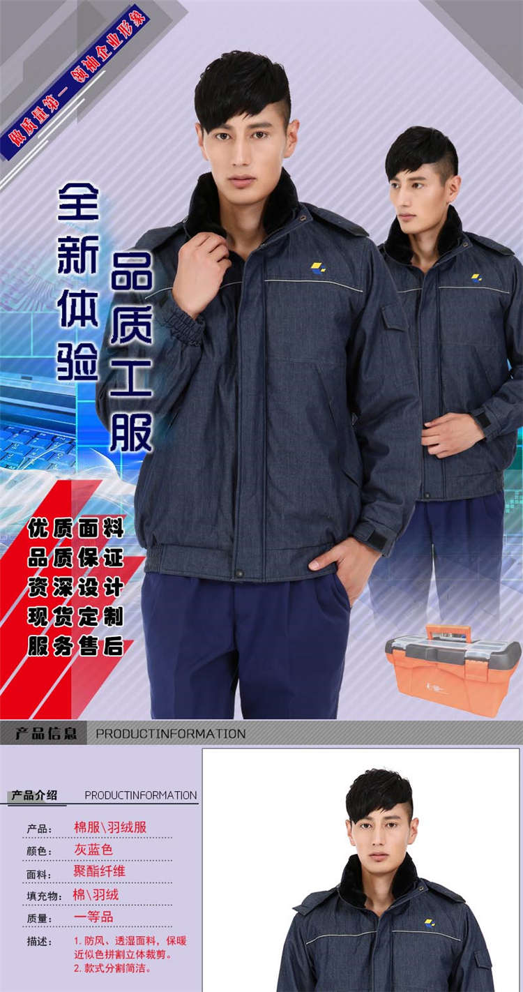 冬季防寒服生產(chǎn)廠家防靜電牛仔棉服羽絨工作服